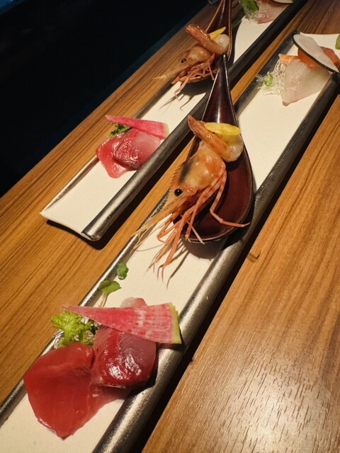 ワンスプーン⋯アワビ、ウニ、イクラの鮑肝醤油和へ