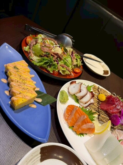 刺身は見た目もきれいでテンション上がるやつ!マグロ・鯛・サーモンを頼んだんだけど、全部しっとりしてて鮮度バッチリ。特に鯛がプリっとしてて、わさびと醤油で食べたらめちゃ美味しくて、友だちと「これ当たりだね!」ってなった。冷たすぎないのも良くて、ちゃんと温度管理してるのが分かって嬉しかった。