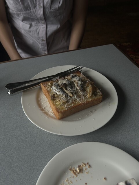 クミンシードとガーリックが効いたザクじゅわの香りの良いトーストにイワシときのこがマッチしてとても美味しかったです!