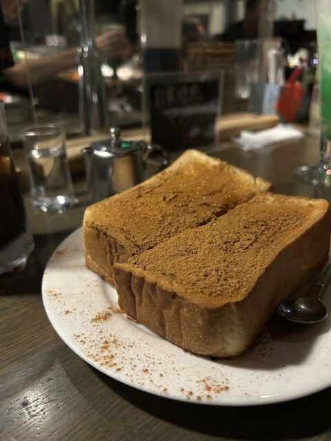 塩ハニートーストとシナモンハニートーストを半分こして食べたのですが、分厚く切られたトーストはどちらも絶品!!!