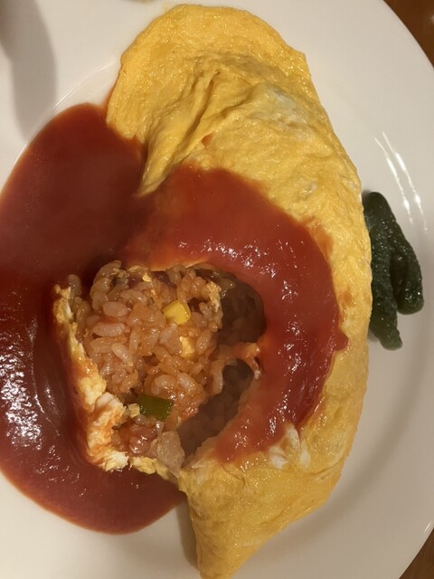 オムライスは昔ながらのやつ。熱々で美味しい!