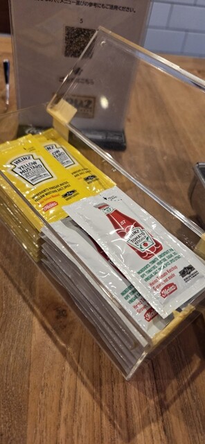 卓上にはハインツのケチャップとマスタードが常備されています。