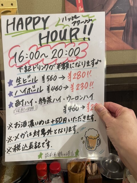 ハッピーアワーが開店の16時から20時まで❣️飲兵衛の味方