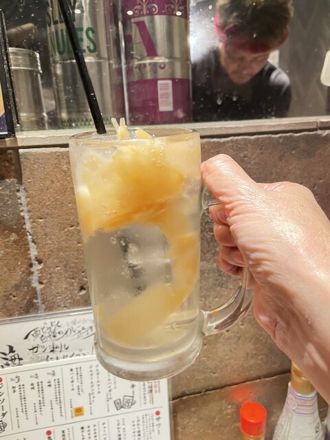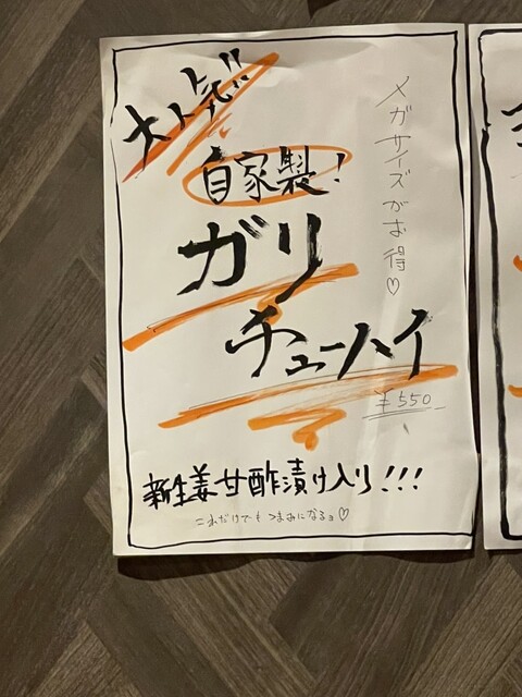 自家製のガリチューが美味しかった。新生姜で作った甘酢漬けが、市販のとは違い、程よい甘さ❤️このガリ、ほんとに美味しかった。1杯目は普通サイズ、2杯目はメガサイズにしちゃった。