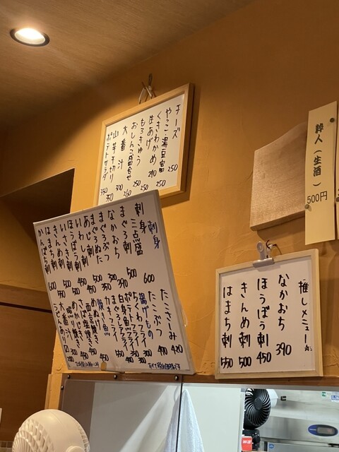 つまみとして、まぐろのすきみ390円、きんめの刺身500円、カキフライ550円❤️