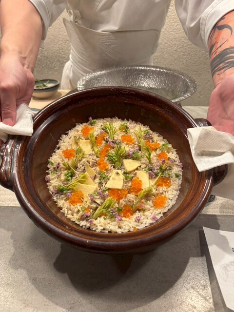 中盤に河豚のしゃぶしゃぶ、後半に蟹を挟むことで、白子一辺倒にならない緩急もつけているが、コースの中心を構成するのは「龍の瞳 煮えばな」。いわゆる締めとしてではなく、白子で膨らませた旨味の記憶を、米の甘みと香りで受け止め直す役割を担っている。炊き込みにせず煮えばなで出す点も合理的で、主役が“具”ではなく“米”であることをはっきりさせている。