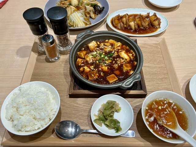 ふたりで本格四川麻婆豆腐定食、中華あんかけ焼そば、レモン風味の黒酢あんかけ揚げ餃子の3品注文。麻婆豆腐は自分で辛さを調整できる様に3つのスパイス付きでお客様に配慮されており、辛さの苦手な私には丁度良い辛さ。味はちょっと塩っぱいです。あんかけ焼そばは、そばが固まっているところがあったりと味は可もなく不可もなし。唯一、揚げ餃子は丁度良い酸味で美味しいと思いリピートしたい味です。ごちそうさまでした!