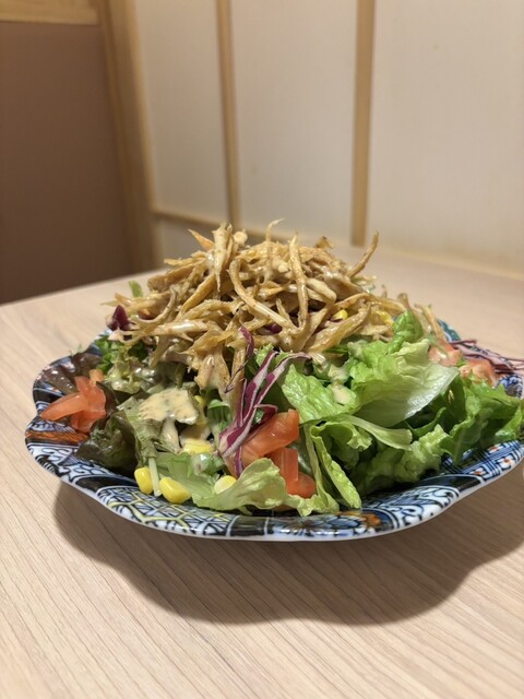 主役のお肉料理はさることながら、一品料理も逸品揃いです。「肉味噌出汁巻き玉子」は、ふわふわの玉子にコクのある肉味噌が絶妙に調和しており、また「山盛りごぼうサラダ」では、揚げ牛蒡の香ばしい食感を楽しむことができます。