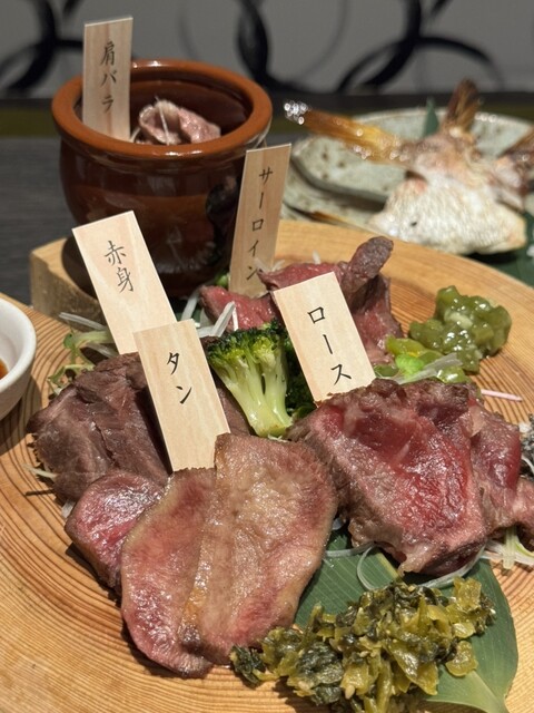 個室で味わう、低温熟成で旨味を凝縮した熟成牛と熟成魚