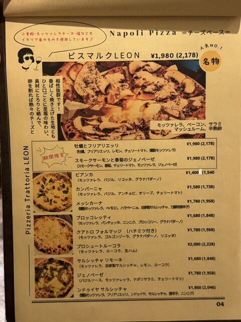 特におすすめしたいのは、【名物】ピッツァ・ビスマルクLEON。