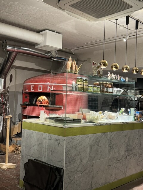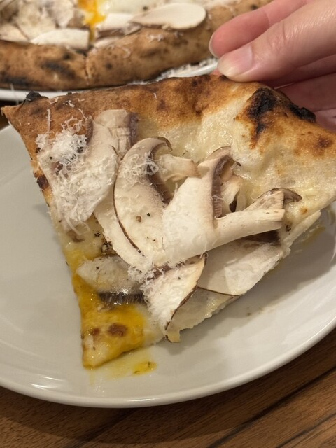 イタリアから取り寄せた薪窯で焼き上げる本格ピッツァは、外はサクッと、中はもちもちの食感です。特にこの「ビスマルクLEON」は、中央のとろーりとした半熟卵がたまりません。