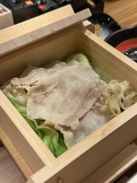 ・季節の温野菜(せいろ蒸し)(1,012円):豚肉と温野菜をせいろで蒸し、素材本来の甘みが引き出されていました。さっぱりといただけて、バランスの良いメニューです。