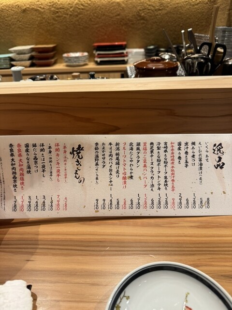 お通しを5種類から3種選べるサービスも嬉しいポイント。豊富なメニューと、細部にまで行き届いた質の高さで、再訪したいと思えるお店です
