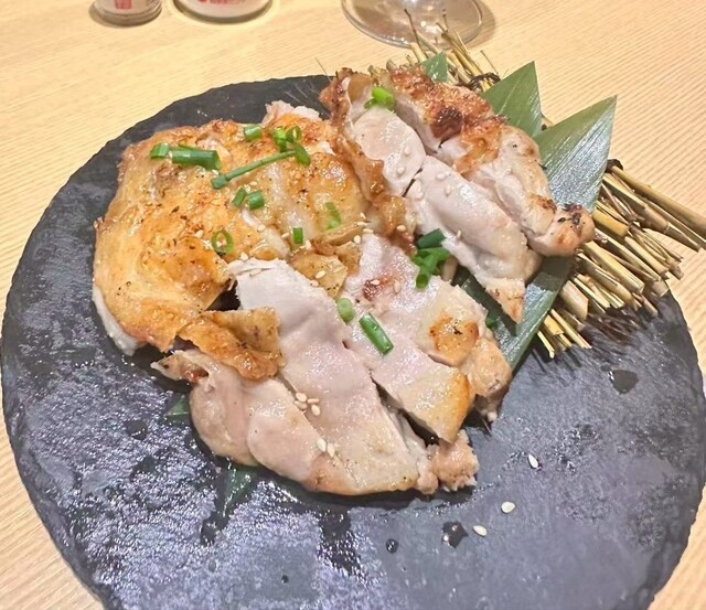 まずは地鶏炭火焼き。皮目はパリッと香ばしく、中はしっとりジューシー。噛むほどに旨味がじわっと出てきて、ビールが止まらん。