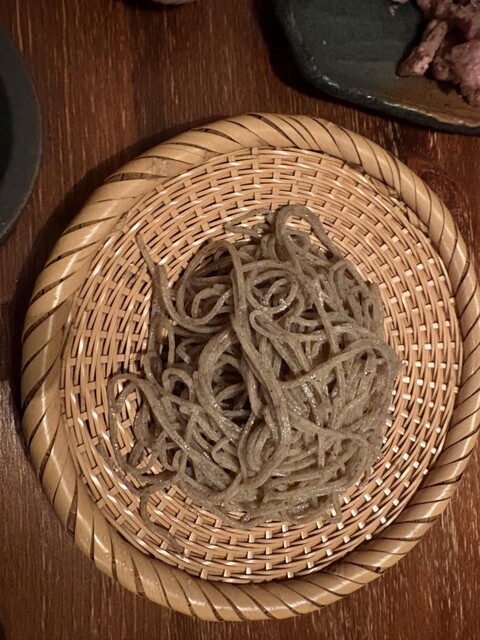 蕎麦‥硬めで粒が活きていて香りが良い。薬味のおろしと塩で食べても美味しい。つゆは出汁の香りも良く塩味もあるが濃すぎない。そば湯を入れてもとても飲みやすい。