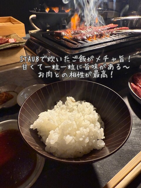 お肉に合うように仕上げられた“完璧ご飯”で、そのご飯の上に柔らかくてジューシーなハラミをダイブさせる幸せ…