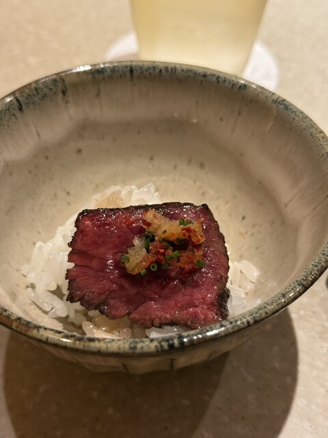 ⚫︎最初に登場したユッケキャビアは、華やかな見た目とともに濃厚な旨味が口の中で溶け合う贅沢な一品。