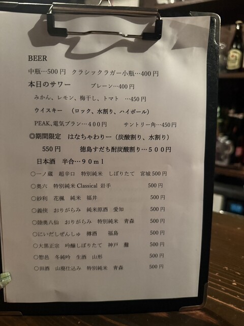 ガヤガヤした立ち飲みとは違って、ちょっと大人でしっぽり飲めるのがいい感じ