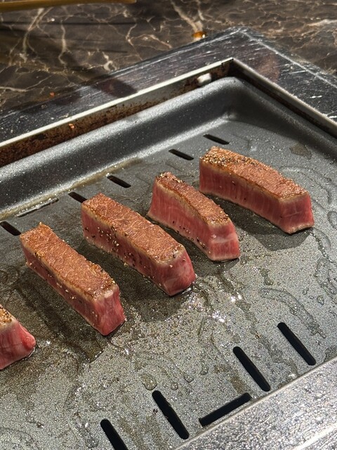 神戸ビーフ刺身、炙りユッケも新鮮なだけあって脂の甘さが濃厚で美味しい〜