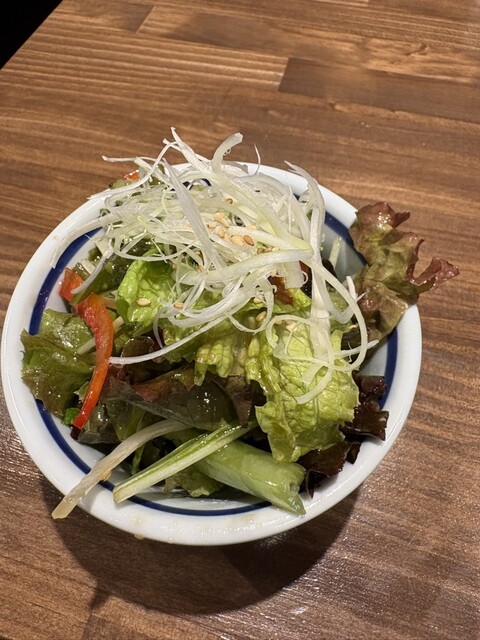 【前菜】は「キムチ盛り合わせ」「シェフの気まぐれサラダ」。ピリッとしたキムチの刺激に「これ、ちょうどいい辛さだね」と彼女もニッコリ。箸が止まりません。