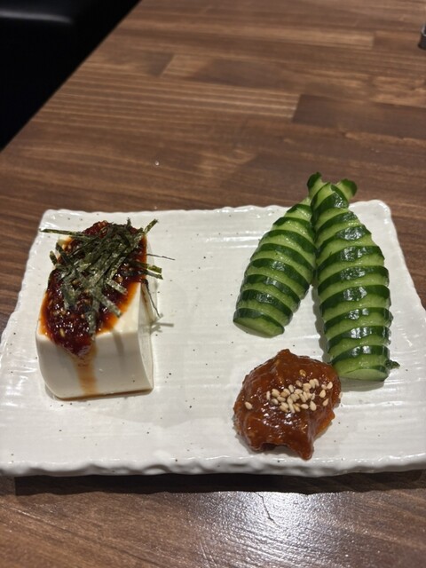 【逸品】の「ごぉのまぜナムル」と「本日の新鮮刺し(ユッケ)」は、まさにごぉらしい一皿。ユッケを口に運んだ瞬間、「これ…溶ける!」と驚く彼女。卵黄とごま油が絡み合い、濃厚で贅沢な味わいに思わずうなずき合います。美味しい!