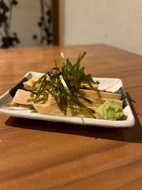 おさかな系では タコの炙りカルパッチョ を注文。軽く炙られたタコは香ばしく、噛むほどに旨味が広がる一皿。