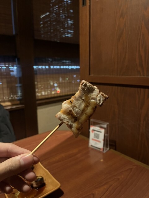お料理は名物の 野菜巻きからスタート。レタス、明太しそ、トリュフエリンギなど、巻かれた食材ごとに食感と香りが変わり、一口でいくつもの味わいを楽しめます。串焼きは 豚バラ串とサガリ串。
