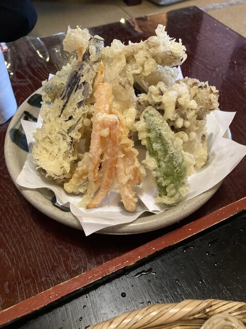 だいぶ前の訪問だけどレポします。写真はそば七合と天ぷら盛り込み。どっちも美味しい。蕎麦つゆは北関東らしく、しっかりした味付け、つまり僕好みです。注文した天ぷらは野菜のみ。当たり前だけど、カラッと揚がってて美味しい幸せ。えび天希望の場合は別注文してね。満足!
