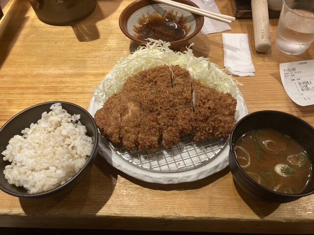 出張先の宿からお腹を空かせて出発。お酒を飲まない僕は空腹を満たす店をさがす。ん、トンカツ屋を発見。ロースカツ定食(大)を注文。もちむぎごはん、赤だしを選択。食パンがズラリと並び、パン粉マシンでパン粉になっていく。アツアツのトンカツのころもはサクサク、肉は柔らかい。人目を気にせずダボダボソースの一切れをひとくちパクリ、ごはんをパクリ。さらにもう一膳ご飯を。赤だしも美味しくて、今日も満足!クーポンて100円引きにしてもらいました。北関東の人にはソースは甘口過ぎるかも‥