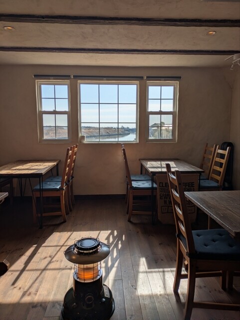 海津市の木曽三川公園近くにあるガレージが素敵なカフェ。