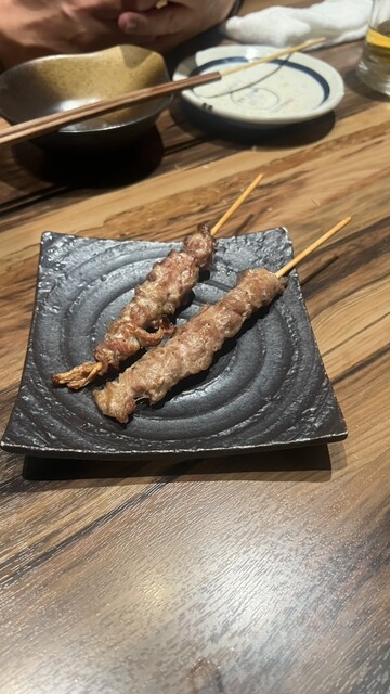 ・もも(2本入り):ジューシーで柔らか。シンプルだけど塩加減と焼き加減が絶妙で、焼き鳥好きなら絶対頼むべき。
