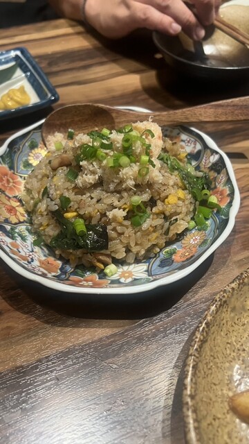 ・カニレタスチャーハン:カニの風味がふわっと香って、パラッと仕上げのチャーハン。〆に頼んだら満足感MAX、ご飯にもお酒にも合う!