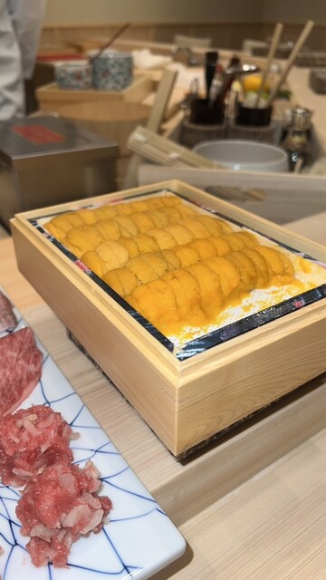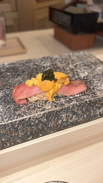 ・和牛雲丹:肉の旨みと雲丹の甘みが重なり、衝撃的な美味しさ。