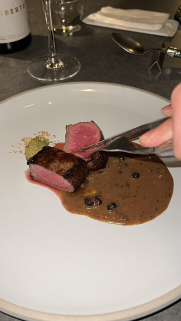 ・グラスフェッドビーフのステーキ 発酵黒豆ホイシンソース:赤身の旨みが濃厚!発酵ソースの深みで肉の甘さが引き立つ。満足度MAX