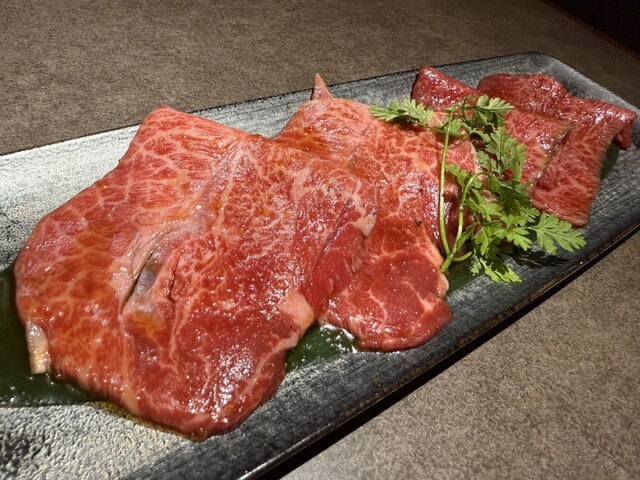 センマイ刺しから始まり、タン、ハラミ、クリサンカク、ミスジ、ヒレ、らんぷ…店員さんが私たちの食べているスピードも鑑みながら、いいタイミングでサーブされるお肉!赤身ベース、食べた感抜群で大満足!