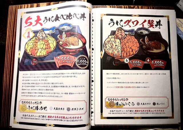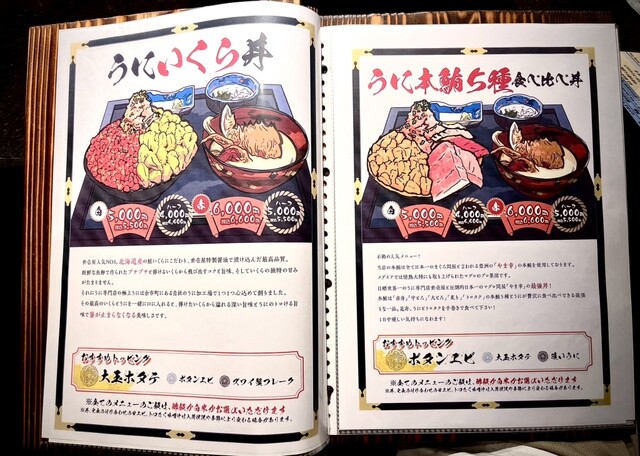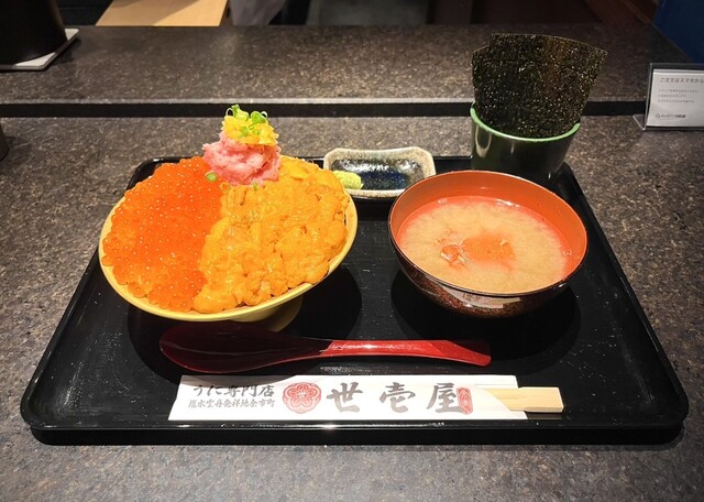 世壱屋の新鮮な雲丹、いくら、ネギトロをカウンター目の前で盛り付け