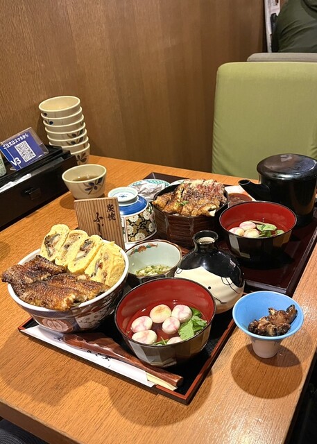 刻みネギやわさび、海苔などの薬味を加えて、味の変化して鰻と和牛を味わいました。