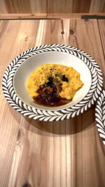 千葉県の農場から新鮮か卵から料理されたオムレツ。ふわふわ玉子にトリュフとオリーブオイル、特製ソース絡み合って美味しい!