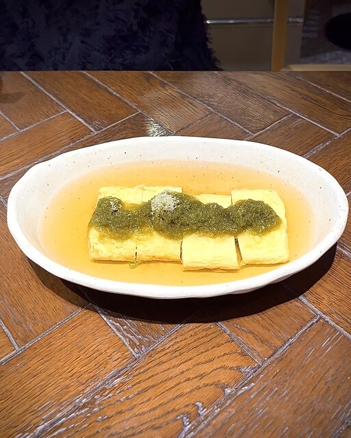 鰹、昆布出汁の風味豊かで、玉子がふんわり柔らかく優しい食感。とろろ昆布の瀞み、磯の香りが加わって味わい豊かな逸品。