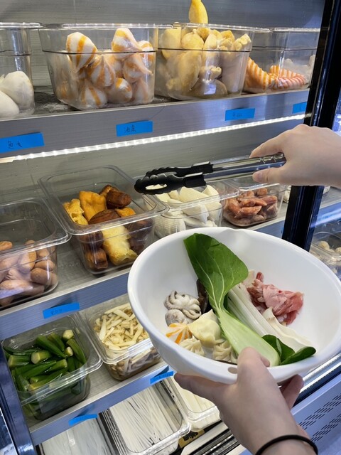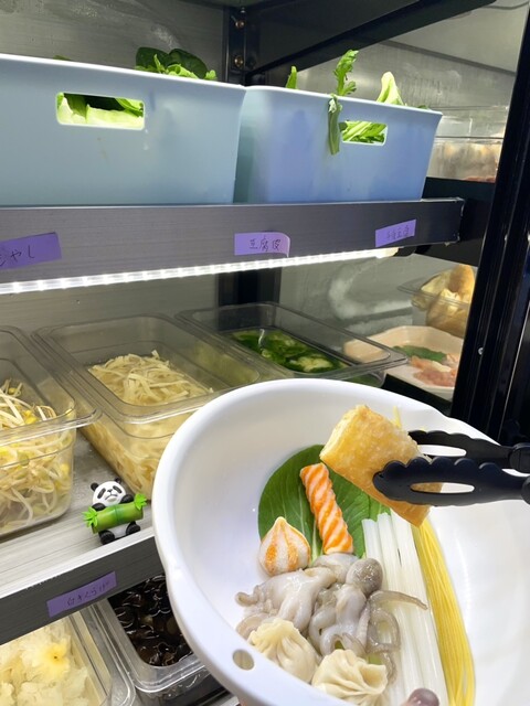 具材はセルフでボウルに入れていくスタイルで、野菜やお肉、海鮮、練り物系から変わり種まで種類が豊富。