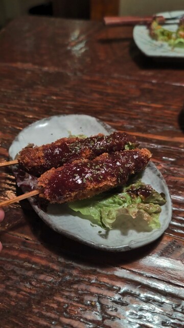 「そして『名物!味噌串カツ』!サクサクの衣と甘口の味噌が最高にマッチして、お酒が止まりません!」