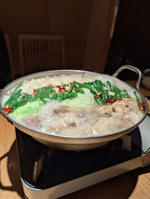 火にかける前から新鮮さが伝わる、ぷるんとした大ぶりのもつ。