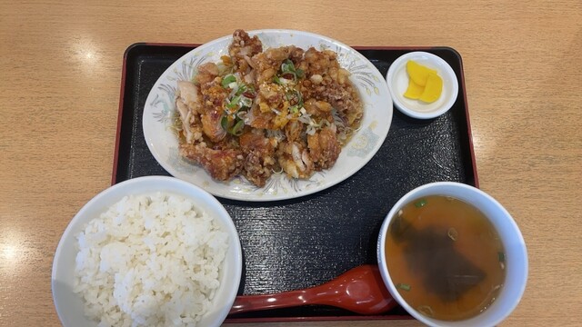 油淋鶏の下に敷いてある野菜も含め、全てタレが絡み合っててとても美味しいですᴗ ̫ ᴗ