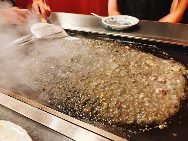 【月島もんじゃの極み!】濃厚なイカ墨と定番の明太もちを堪能!