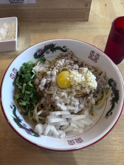 こってりしていて味が濃くて美味しかったです。店の前に専用のガチャガチャがあり回したところ、玉ねぎかねぎの無料トッピング券が出てきました。玉ねぎをトッピングしたら辛さが増していいアクセントになりました。夜はほとんどやっていないので夜行く時は注意してください。