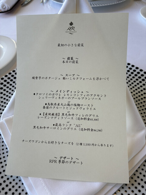 いつも頼むのは平日限定でお肉かお魚が選べるコース、4,356円(税込、サービス料込)。ホテルのフレンチが手の届く金額で楽しめます。