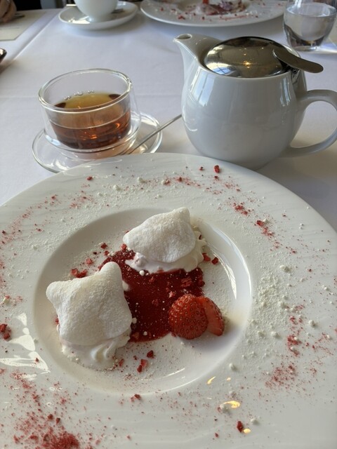 ・デザート(求肥の下にソフトクリーム、イチゴの ソース)
