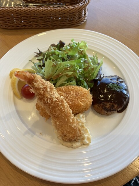 カニクリームコロッケもエビフライもサクサクでカラッとしていてハンバーグはふんわり美味しい