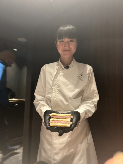 ⭐️シャトーブリアンステーキサンド…オニオン系のソースが基本的に塗られている。満願寺とうがらしソースをのせていただくと、辛すぎない味変で飛びます。