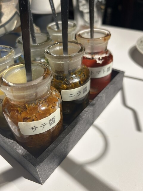 こちらは火鍋としてはレベルが高そうなので、とても楽しみにしていた。味変の調味料も8種類もあるし、あまり見たことのないものばかりだ。